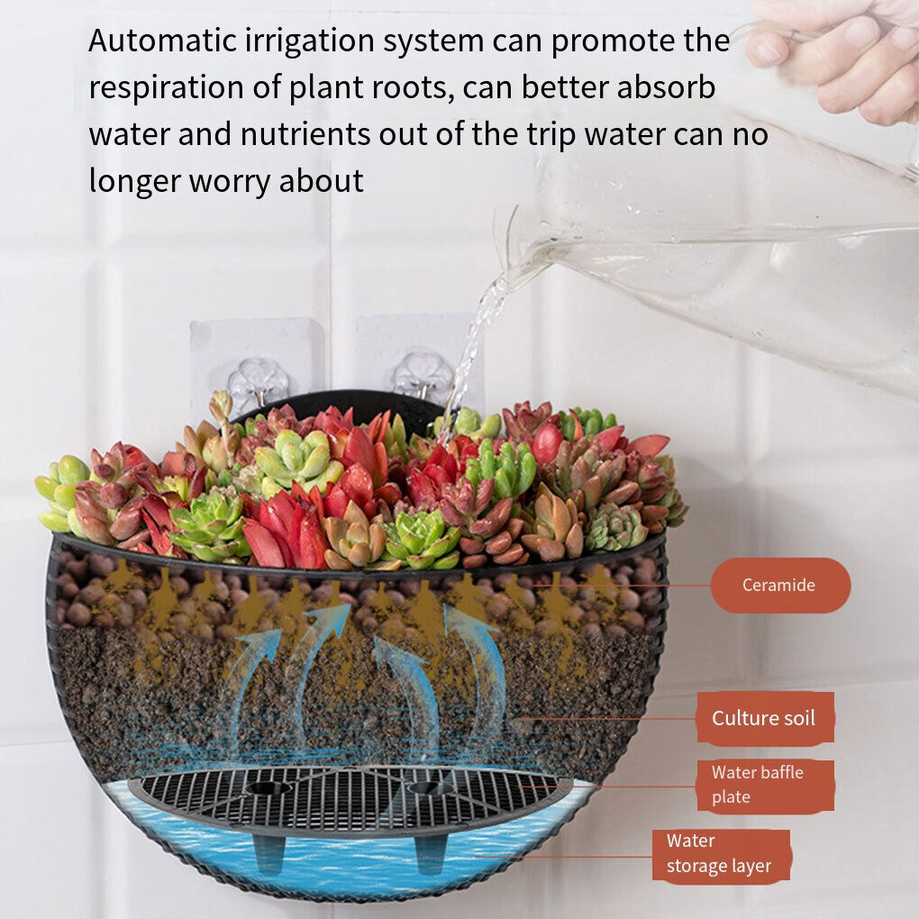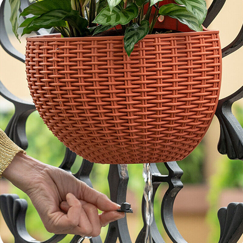 Add greenery to any space with these Half-Round Rattan Wall Planter Pots, perfect for hanging on fences, balconies, patios, or indoor walls. Designed with a rustic rattan texture, these space-saving planters come with a built-in self-watering system to keep your plants thriving with no mess and no leaks.